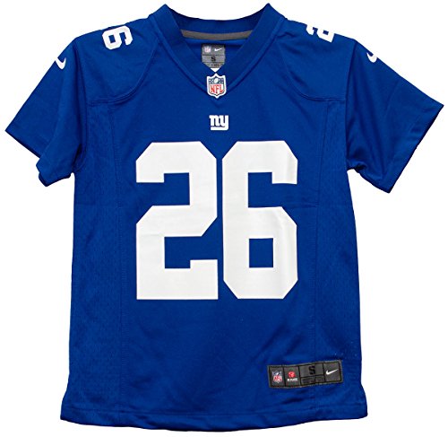 これはsaquonバークレーニューヨーク・ジャイアンツチームカラーユースNIKEゲームジャージーです。サイズは子供用S 8、M 10 – 12、L 14 – 16であり、XL 18 – 20。グラフィックをプリント、襟にNFLシールド。公式ライセンス商品。