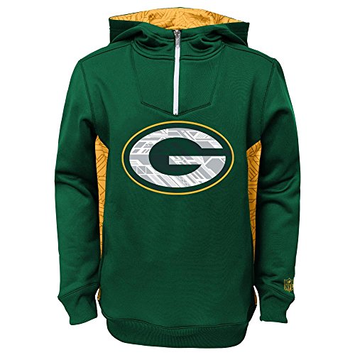 小さなお子様は暖かくこのフットボールシーズンのグリーンBay Packers half-zipフリースのスエットシャツ。PACKERS電源チームの公式ロゴを特徴として前面に刺繍、ライニングのフード、リブ付きウエストバンドと袖口、あなたに冷静にお子様を応援しながら、スタイリッシュな移動を可能にし快適にパッカーズ