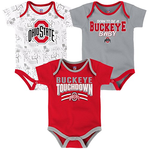 Outerstaff による NCAA Playmaker 赤ちゃん肌着ワンジー 3 枚セットで、小さなファンが大好きなチームを応援します。プレゼントに最適。3 枚組の赤ちゃん肌着の前面には、1 枚ず異なったチームのグラフィックがスクリーンプリントされています。股の部分のスナップ留めで簡単に着替えができます。綿/ポリエステル混紡生地は洗濯洗いができ、快適な着心地です。NCAA 公式ライセンス商品です。