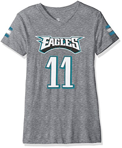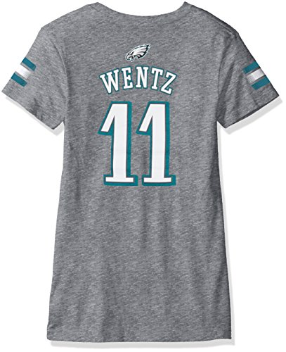 NFL Girls 7 – 16 Carson Wentz Philadelphia EaglesメインストライプVネックPlayer Name & Number半袖Tシャツ、大/(14)、ヘザーグレー