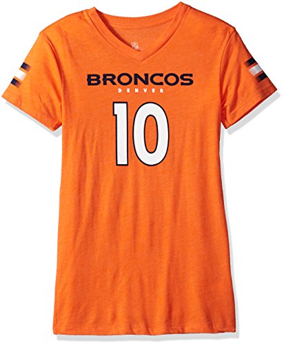NFL Girls 7 – 16 Emmanuel Sanders Denver BroncosメインストライプVネックName & Number半袖Tシャツ、Large /(14)、オレンジ