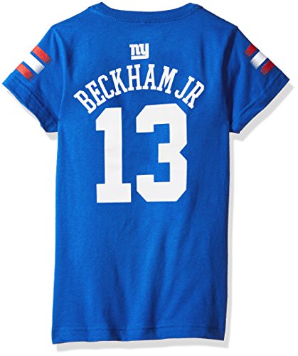 NFL Girls 7 – 16 Odell Beckham Jr。新しいYork GiantsメインストライプVネックPlayer Name & Number半袖Tシャツ、ミディアム/ ( 10 – 12 )、ダークロイヤル