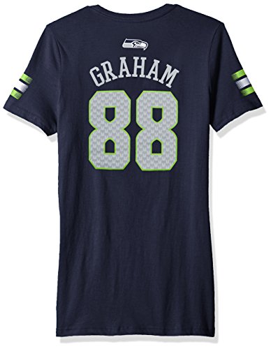 NFL Girls 7 – 16 Jimmy Graham Seattle SeahawksメインストライプVネックName & Number半袖Tシャツ、Xラージ/ ( 16 )、ダークネイビー