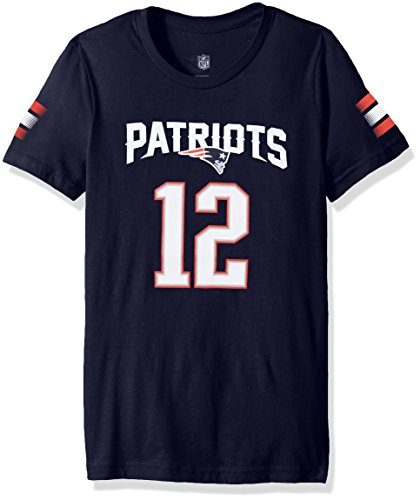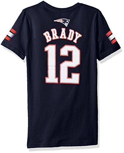 NFL Girls 7 – 16 Tom Brady New England PatriotsメインストライプVネックPlayer Name & Number半袖Tシャツ、ダークネイビー、ミディアム/ ( 10 – 12 )