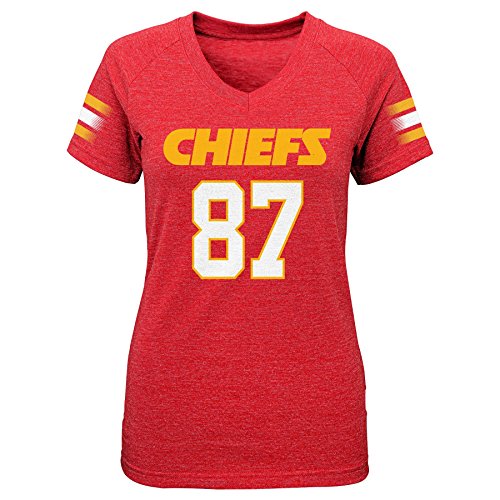 NFL Girls 7 – 16 Travis Kelce Kansas City Chiefs Girls – メインストライプVネックPlayer Name半袖Tシャツ、レッド、S ( 7 – 8 )