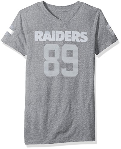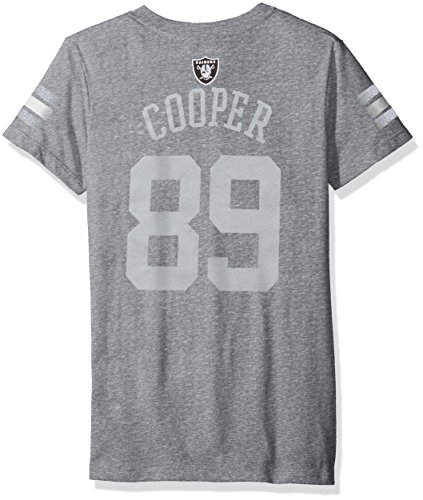 NFL Girls 7 – 16 Amari Cooper Oakland RaidersメインストライプVネックPlayer Name & Number半袖Tシャツ、ミディアム/ ( 10 – 12 )、ヘザーグレー