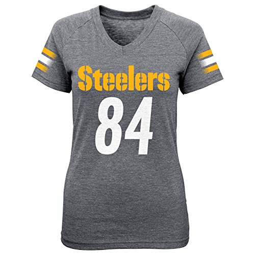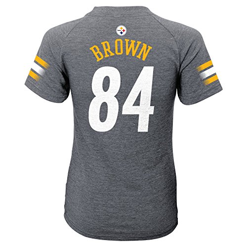 NFL Girls 7 – 16 Antonio Brown Pittsburgh SteelersメインストライプVネックName & Number半袖Tシャツ、スモール/(7 – 8)、ヘザーグレー