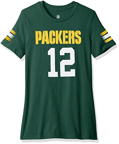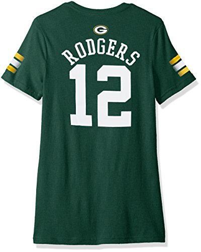 NFL Girls 7 – 16アーロン・ロジャースグリーンベイ・パッカーズメインストライプVネックName & Number半袖Tee、ハンター、Large / ( 14 )