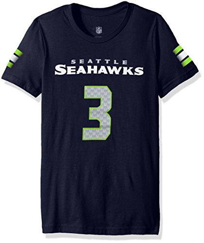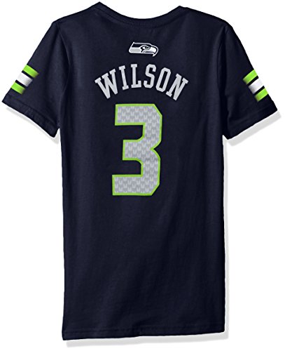 NFLシアトルシーホークスメインウィルソンGirls 7 – 16ラッセルストライプVネックPlayer Name & Number半袖Tシャツ、ミディアム/ ( 10 – 12 ) , Dark Navy