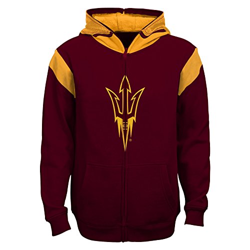 サポートであなたのチームスタイルでこのユースNCAAスウェットシャツ。80%コットン/ 20%ポリエステルと機能スクリーンプリントのチームグラフィックス、フットボールヘルメットのデザインで作成したフード、フルジップの前面、NCAAの公式グッズです。