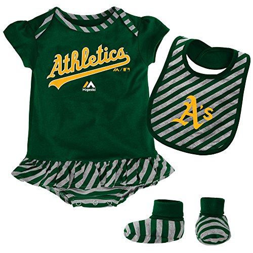 - MLBオークランド・アスレチックス女の赤ちゃんのストライプのボディスーツ・スカート、ビブとブーティーのセット