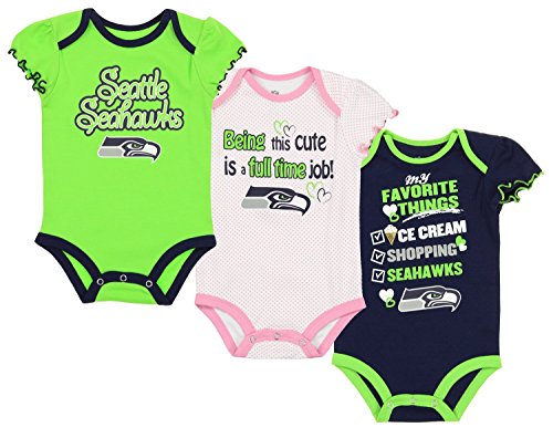 シアトル・シーホークスNFL Infant Girls 3 Piece Creeperボディスーツセット、ネイビー/グリーン/ホワイト