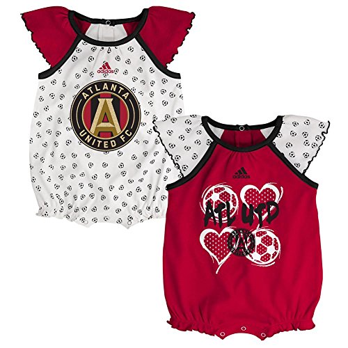 アトランタ・ユナイテッド幼児ボディスーツ2パック、トレーナー設定されている場合があります。このU。S。プリントロンパースは綿100 %素材で、洗濯機で洗えます。これらの半袖snapsuits下部スナップが変更しやすくするため、アメリカに独自のサッカーボールとハートデザインの特長がスクリーンの前面にsnapsuits。これらのスーツはまた繰り返しサッカーボールデザインが特徴の袖とボディを作成します。このセットはあらゆる新しいサッカーファンにとって最高の人生を左右する。unitedandconquer 。