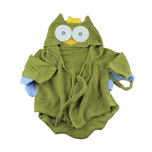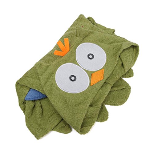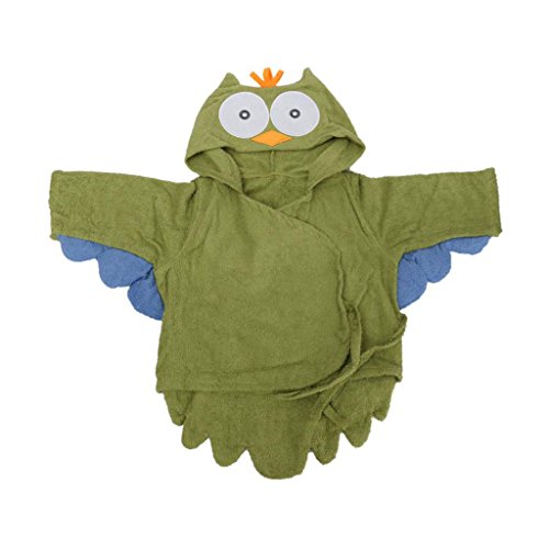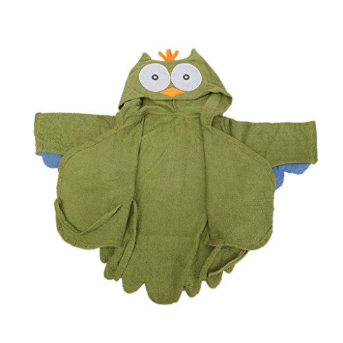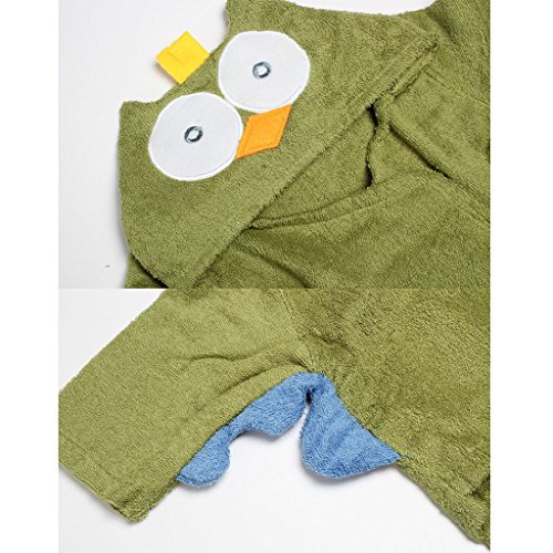 Ovonni ベビーバスローブ 湯上りベビーポンチョ ふわふわ心地 超可愛い 記念撮影、百日撮影にも適用 出産祝い 贈り物 (グリーンふくろう)