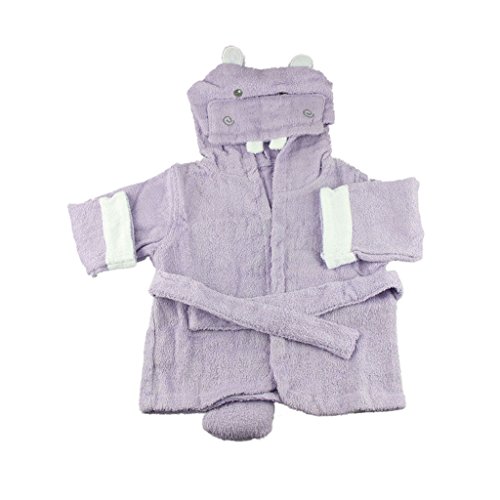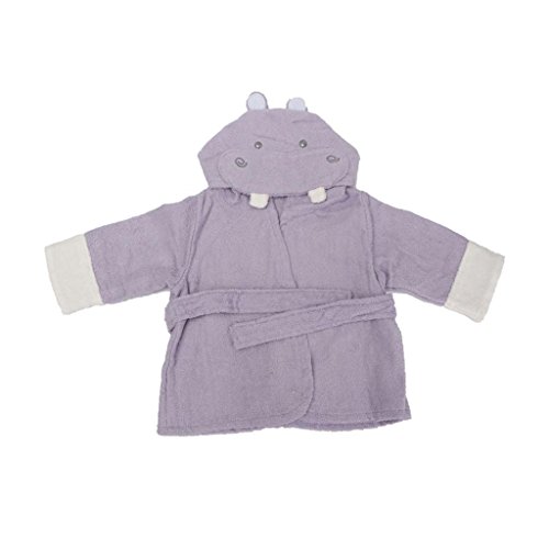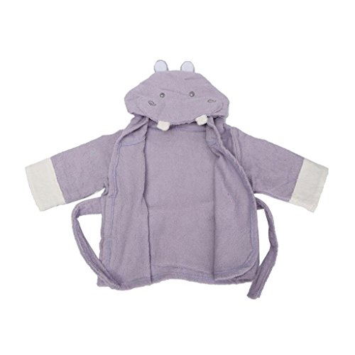 Ovonni ベビーバスローブ 湯上りベビーポンチョ ふわふわ心地 超可愛い 記念撮影、百日撮影にも適用 出産祝い 贈り物 (パープル河馬)