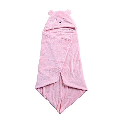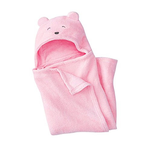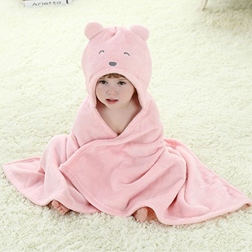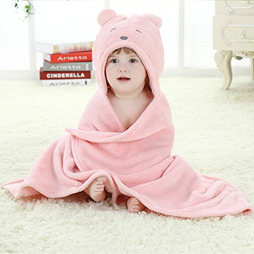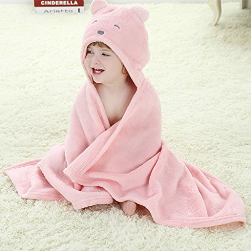 Ovonni ベビーバスローブ お風呂上り 激カワバスローブ 子供用 ふわふわ心地 記念撮影、百日撮影にも適用 出産祝い 贈り物 (ピンク熊)