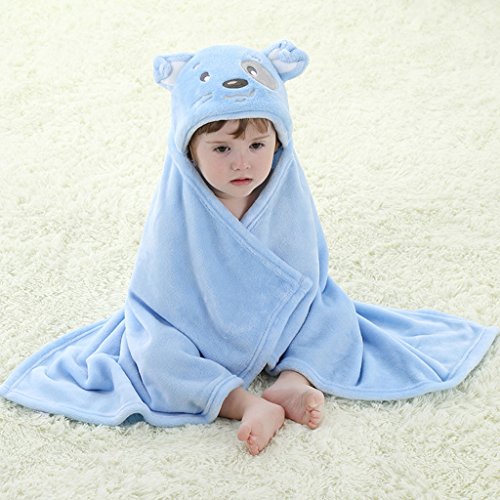 Ovonni ベビーバスローブ お風呂上り 激カワバスローブ 子供用 ふわふわ心地 記念撮影、百日撮影にも適用 出産祝い 贈り物 (ブルーこいぬ)
