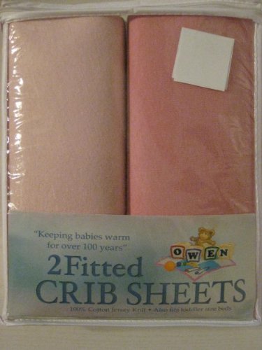 2 Fitted Cotton Knit Crib Sheet in Shades of Pink by Owen