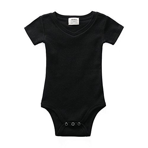 Owliviaオーガニックコットン赤ちゃん男の子女の子Vネックボディスーツ、ショートスリーブ(サイズ0 – 18月 カラー: ブラック