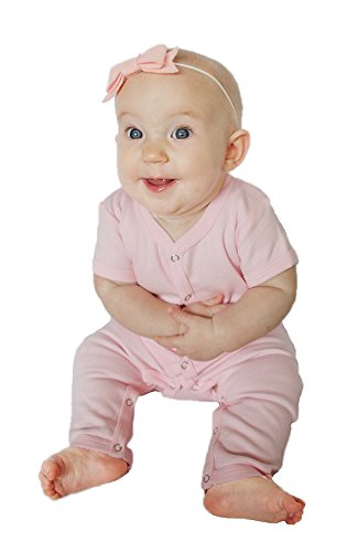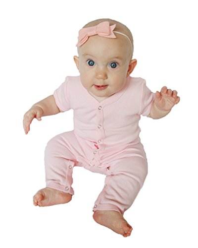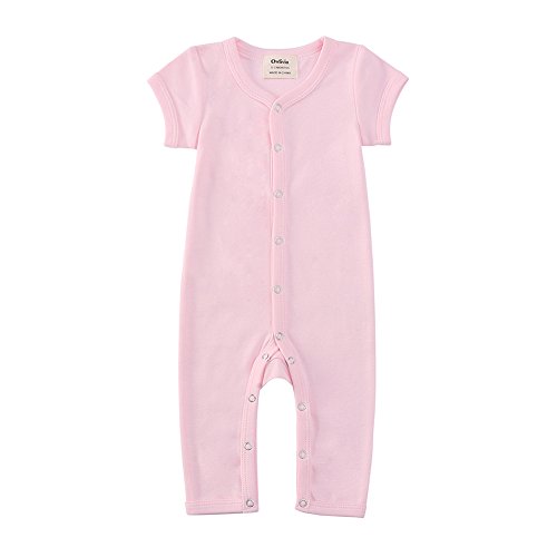 Owliviaオーガニックコットン赤ちゃん男の子女の子スナップフロントロンパース/ Footlessパジャマ、ショートスリーブ(サイズ0 – 18 M ) カラー: ピンク