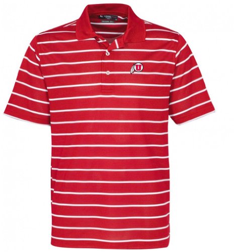 NCAAユタUtesメンズリンクTech Pebbleテクスチャクラシックストライプ半袖ポロ、Cardinal /ホワイト、ミディアム
