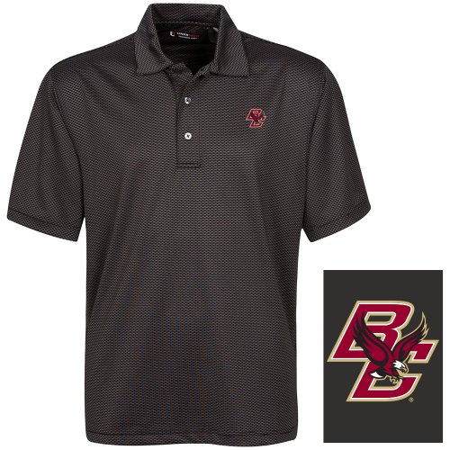 NCAA Boston College EaglesメンズリンクTech Stretch Tonalジャカード半袖ポロシャツ、スモール、ブラック