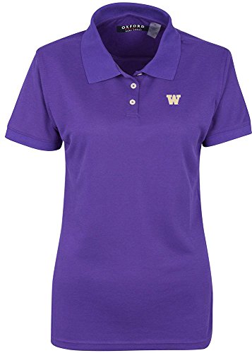 NCAA Washington Huskiesレディースソリッドピケ半袖ポロ、グレープ、Large