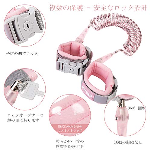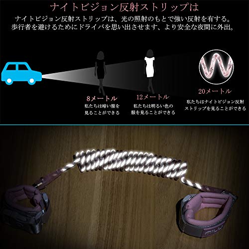 子供の反失われた手首のリンク縄、 幼児 ハーネス リストバンド、 子供安全ハーネス、 反ロスト安全縄(2メートル、 安全 ロック付き、 ナイトビジョン反射ストリップ)- ピンク
