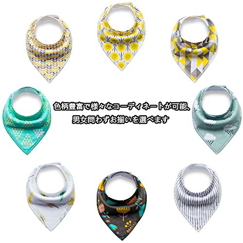 - 1.【おしゃれ】よだれかけに見えないよう、ベビー服の一部またはアクセントになる可愛い△形スタイ。8種の柄も用意して、洗い替えラクラク。