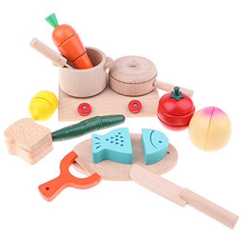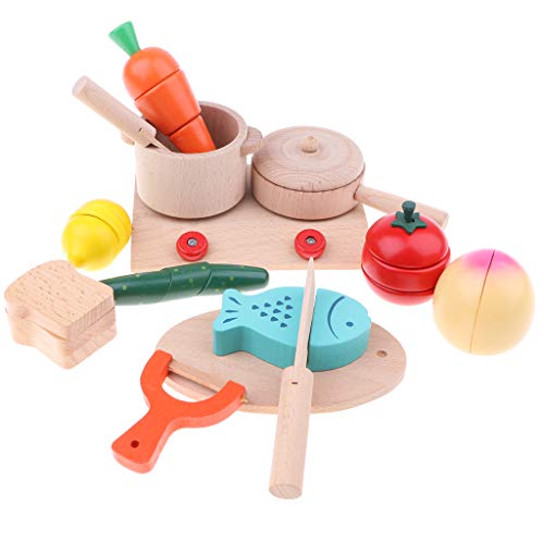 - 木製マグネットキッチン食べ物を切って遊ぶことを楽しむ木製14点セット