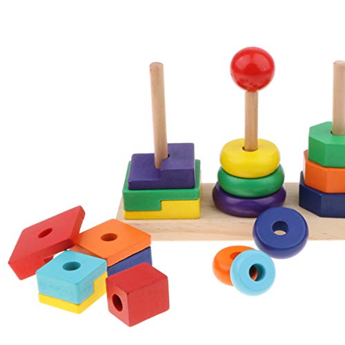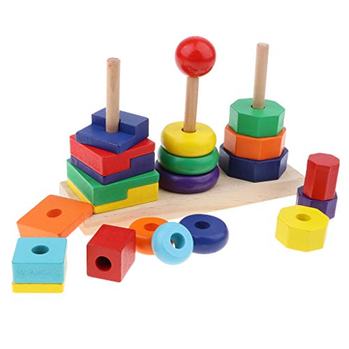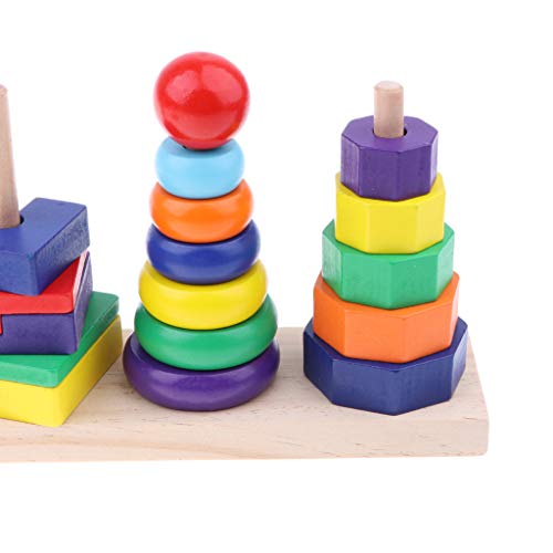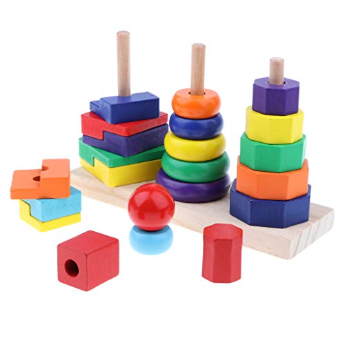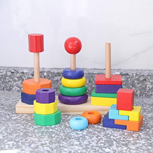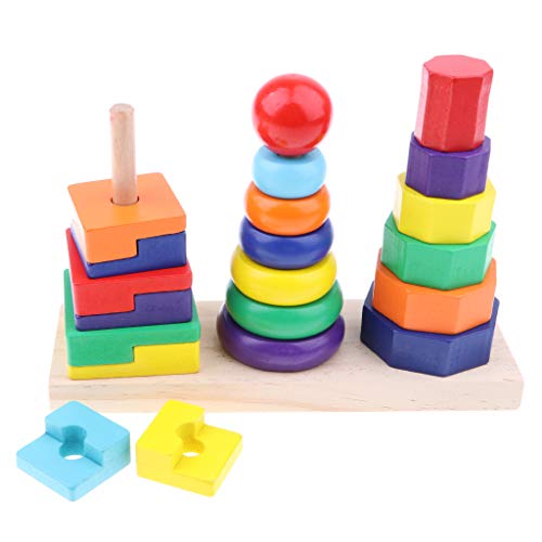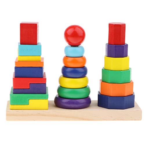 P Prettyia カラフル 虹色 リング 八角形 長方形 幾何学ブロック ジオメトリブロックタワーおもちゃ