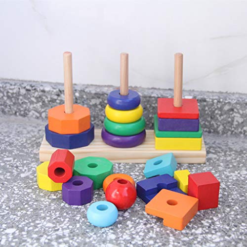 - 子供/赤ちゃん早期学習認知3列木製ブロックマッチ&スタック虹タワーセット幼児用教育玩具