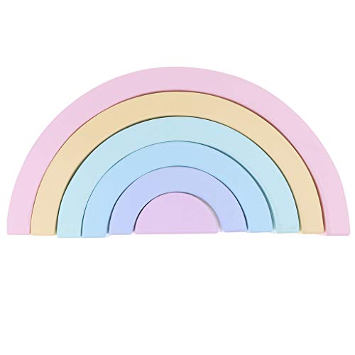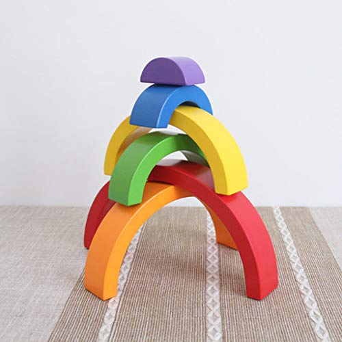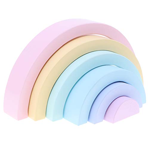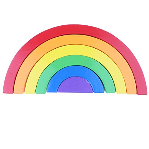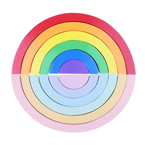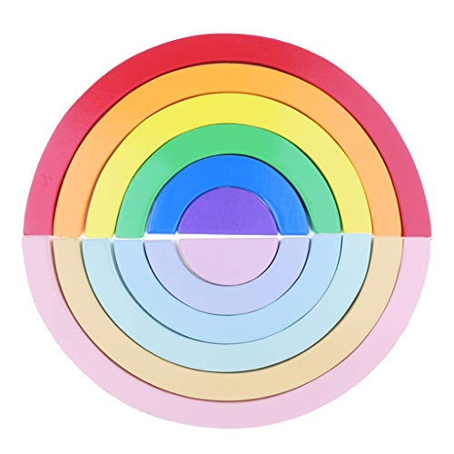 P Prettyia 木製スタッキングおもちゃ 虹 ビルディング ブロック 積み木 子供の教育玩具 2セット入り