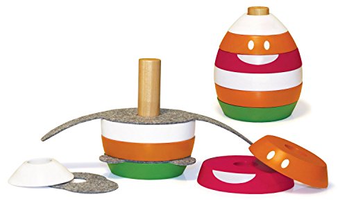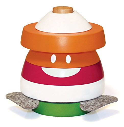 Stimulate creativity with this playfully imaginative stacking toy. Eight felt accessories stack in between the wood pieces to become arms, legs, clothing,or even a super-hero's cape! The creative endless variations allow toddlers to build their very own playmate. The stacking features fine-tune hand-eye coordination and strengthen manual dexterity as they teach children about size and proportion.