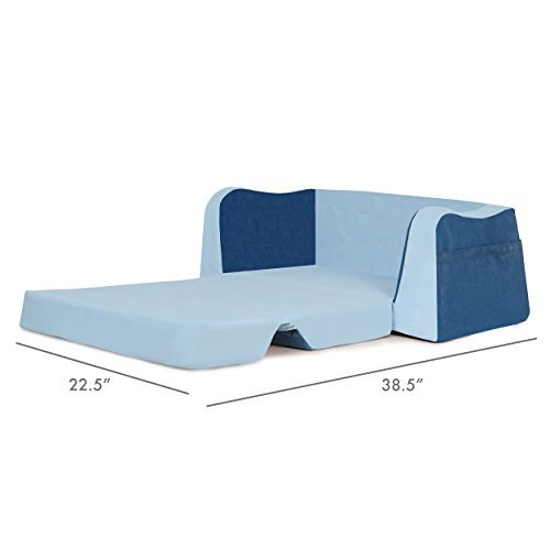 The recently redesigned little reader sofa, is the perfect companion to the new little reader chair, with its wide base and strong angular lines makes this sofa attractive and supremely sturdy. Comfy foam, supple fabric, book pockets and easy to fold out sleeper, creates the perfect combination for a little quiet-time. This durable sofa is made with the highest quality materials. Constructed with premium high density foam and upholstered in cozy, stain resistant fabrics.
