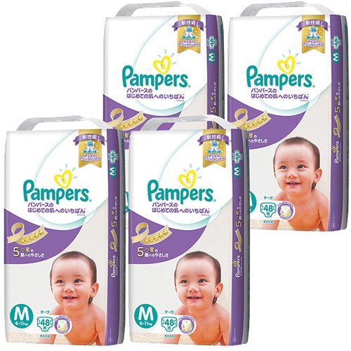 P&G パンパース はじめての肌へのいちばん テープ スーパージャンボ Mサイズ 48枚×4パック (192枚入り)