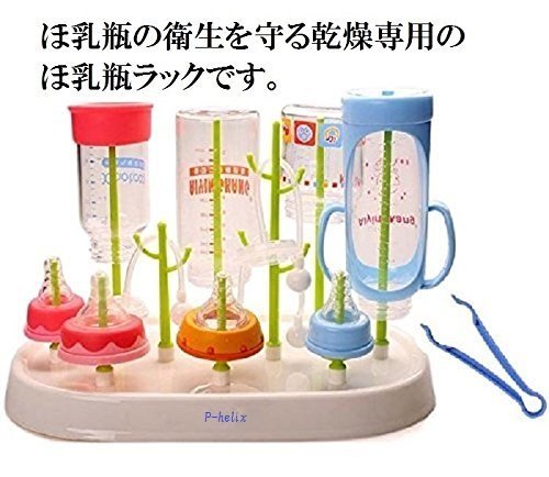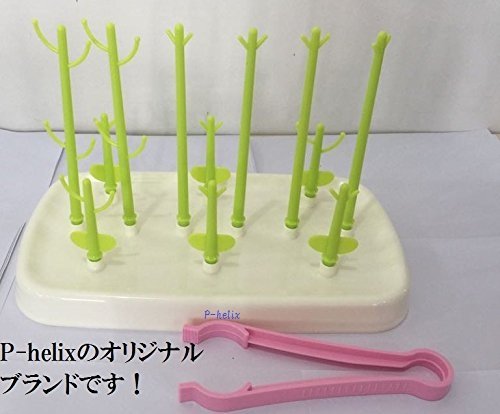 P-helix 哺乳瓶 消毒 乾燥 取り外し コンパクト収納 ラック はさみ付き (グリーン)