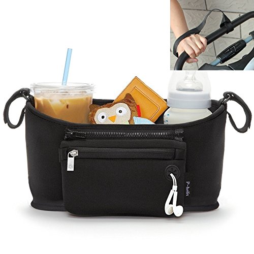 P-helix ベビーカー 小物入れ ホルダー フック 多機能 収納 安全リストバンド付き (ブラック)