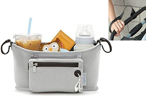 P-helix ベビーカー 小物入れ ホルダー 多機能 収納 安全リストバンド付き (グレー)