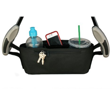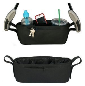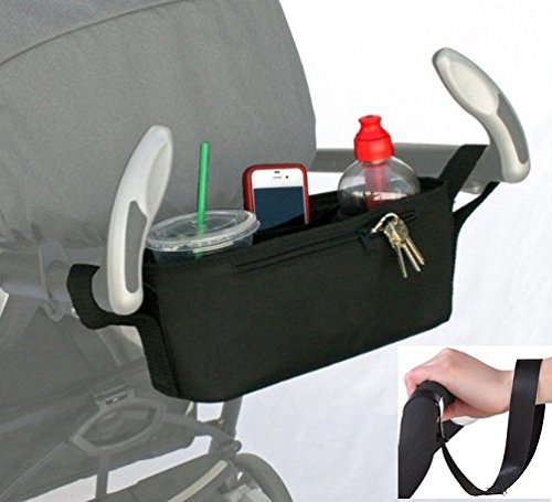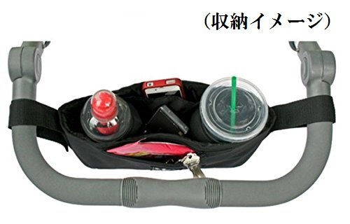 P-helix ベビーカー バッグ小物入れ ドリンク ホルダー 収納 ポケットバッグ 安全リストバンド付き (ブラック)
