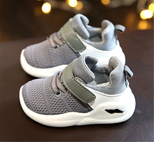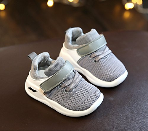 PANCY ベビーシューズ スニーカー 柔らかい子供シューズ 子供靴 (L(足の長さは13.5cm), グレー)