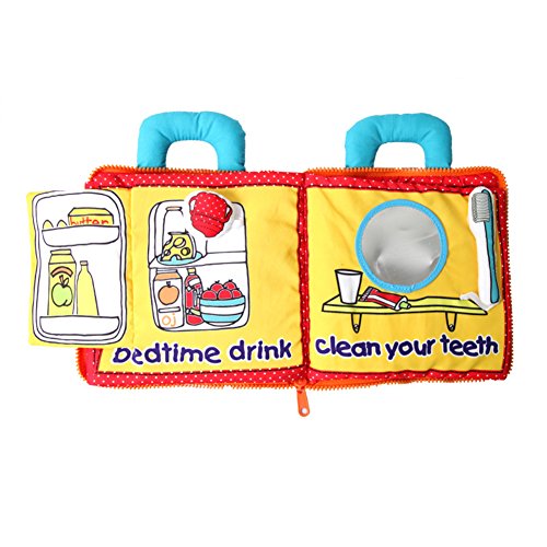 PANCY ベビー用 布絵本 知育玩具 布製 生活常識を学ぶ 仕掛け絵本 寝る前 かわいい クマぬいぐるみ付き
