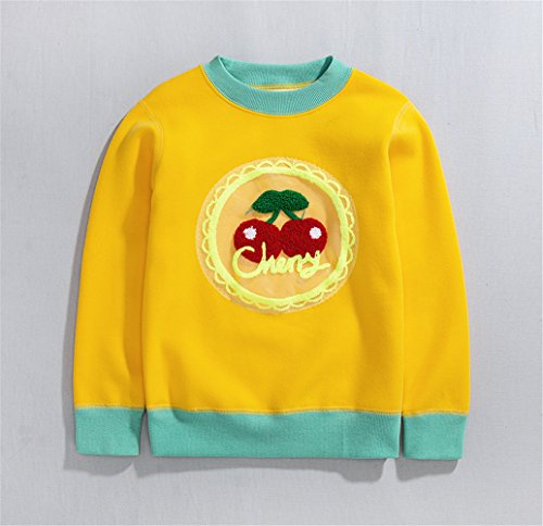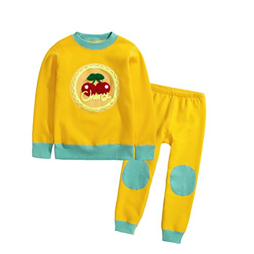 PANCY 子供服 長袖 ルームウェア 上下セット 秋冬 裏起毛 女の子 アップリケ(イエロー(チェリー),100cm)