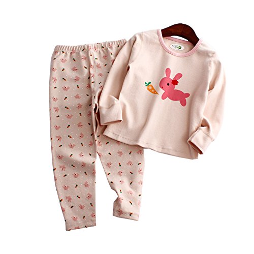 PANCY 子供服 長袖 ルームウェア 上下セット 秋冬 女の子 うさぎ柄(110cm,ライトピンク)