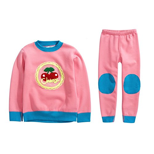 PANCY 子供服 長袖 ルームウェア 上下セット 秋冬 裏起毛 女の子 アップリケ(ピンク(チェリー),120cm)