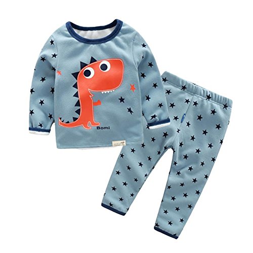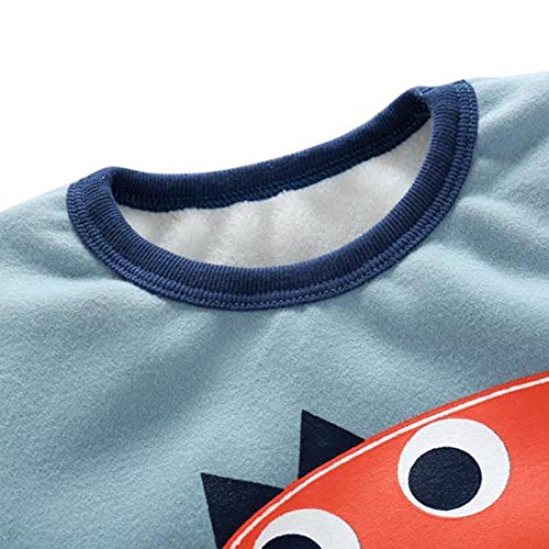 PANCY 子供服 秋冬 長袖 トレーナー ロングパンツ 上下セット ボア 男の子 女の子 可愛い 恐竜 プリント(100cm,ライトブルー)