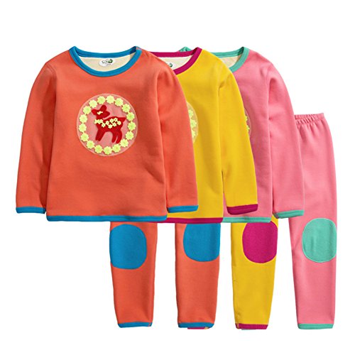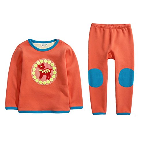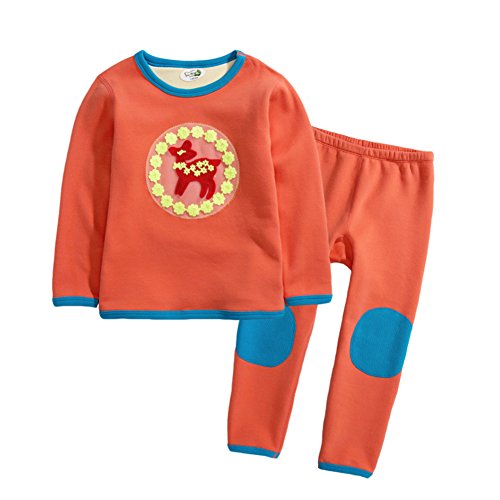 PANCY 子供服 長袖 ルームウェア 上下セット 秋冬 裏起毛 女の子 アップリケ(オレンジ(しか),140cm)
