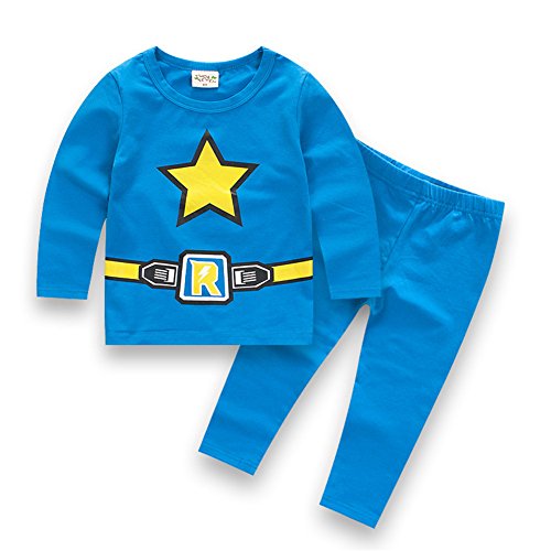 PANCY 子供服 春秋 トレーナー 長袖 ルームウェア ロングパンツ 上下セット 男の子 かっこいい 星プリント(ブルー,130cm)