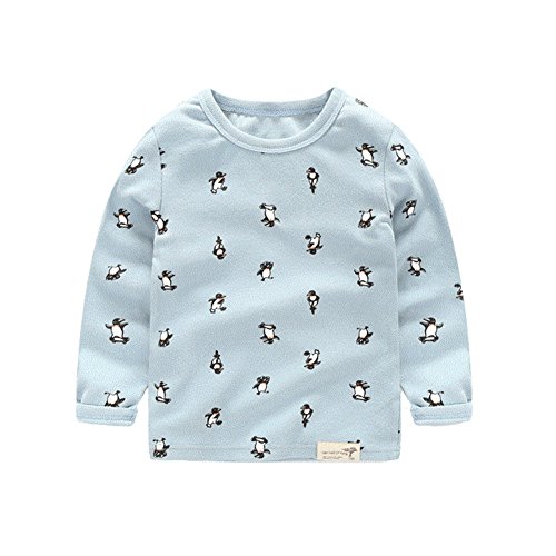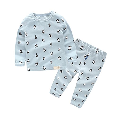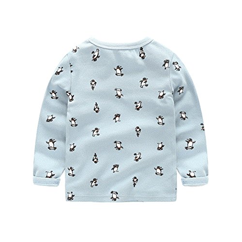 PANCY 子供服 春秋 トレーナー キッズ 長袖 ルームウェア ロングパンツ 上下セット 男の子 女の子 可愛い ペンギン柄 プリント(ライトブルー,100cm)