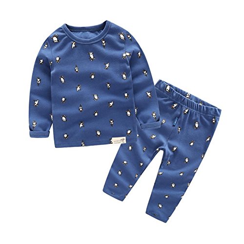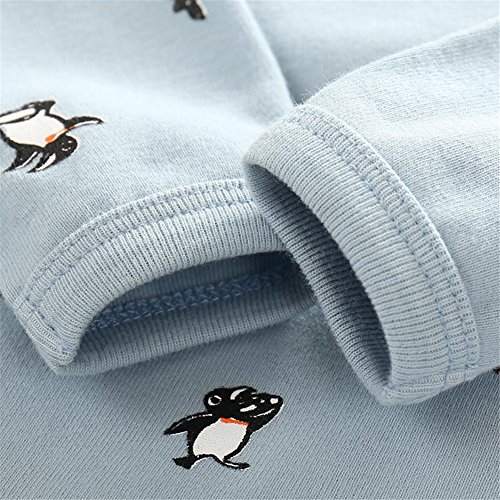 PANCY 子供服 春秋 トレーナー キッズ 長袖 ルームウェア ロングパンツ 上下セット 男の子 女の子 可愛い ペンギン柄 プリント(ブルー,100cm)